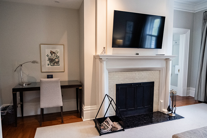 All spacious and beautifully appointed rooms feature feather beds with down duvets and many have a sitting area with wood-burning fireplaces and fine antiques.